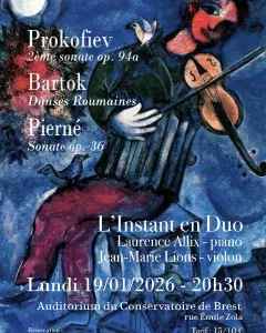 L'Instant en Duo (Laurence Allix, piano - Jean-Marie Lions, violon) vous propose un programme Prokofiev - Pierné - Bartok
